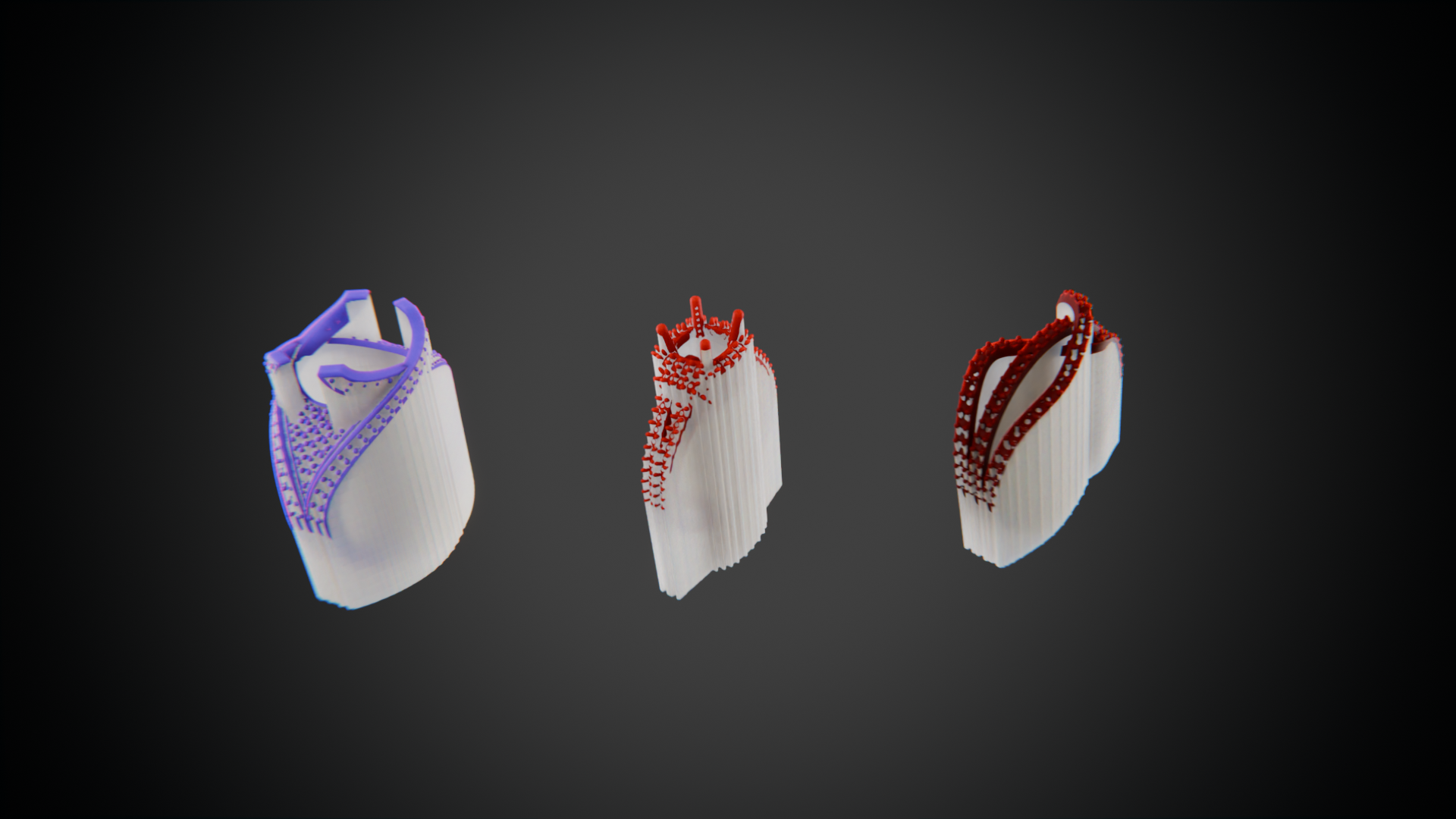 • Procedural print simulation with geometry nodes and voxel-based dynamic supports, accurately representing the printer’s multiple resolution modes (XHD, QHD, ZHD, UHD)